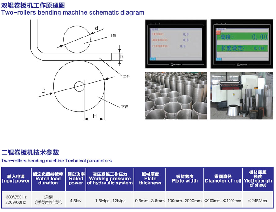 該設(shè)備自動(dòng)化程度高,一次卷制成型,無(wú)明顯直邊,卷圓進(jìn)度高,產(chǎn)品一致性好。提高了生產(chǎn)效率,降低了生產(chǎn)成本。是高效率、高精度、高自動(dòng)化的卷板設(shè)備。廣泛應(yīng)用于大批量制造薄壁管,汽車(chē)油桶、通風(fēng)管道、煙囪、過(guò)濾器,太陽(yáng)能熱水器,汽車(chē)排水管,儲(chǔ)液(氣)罐等等。